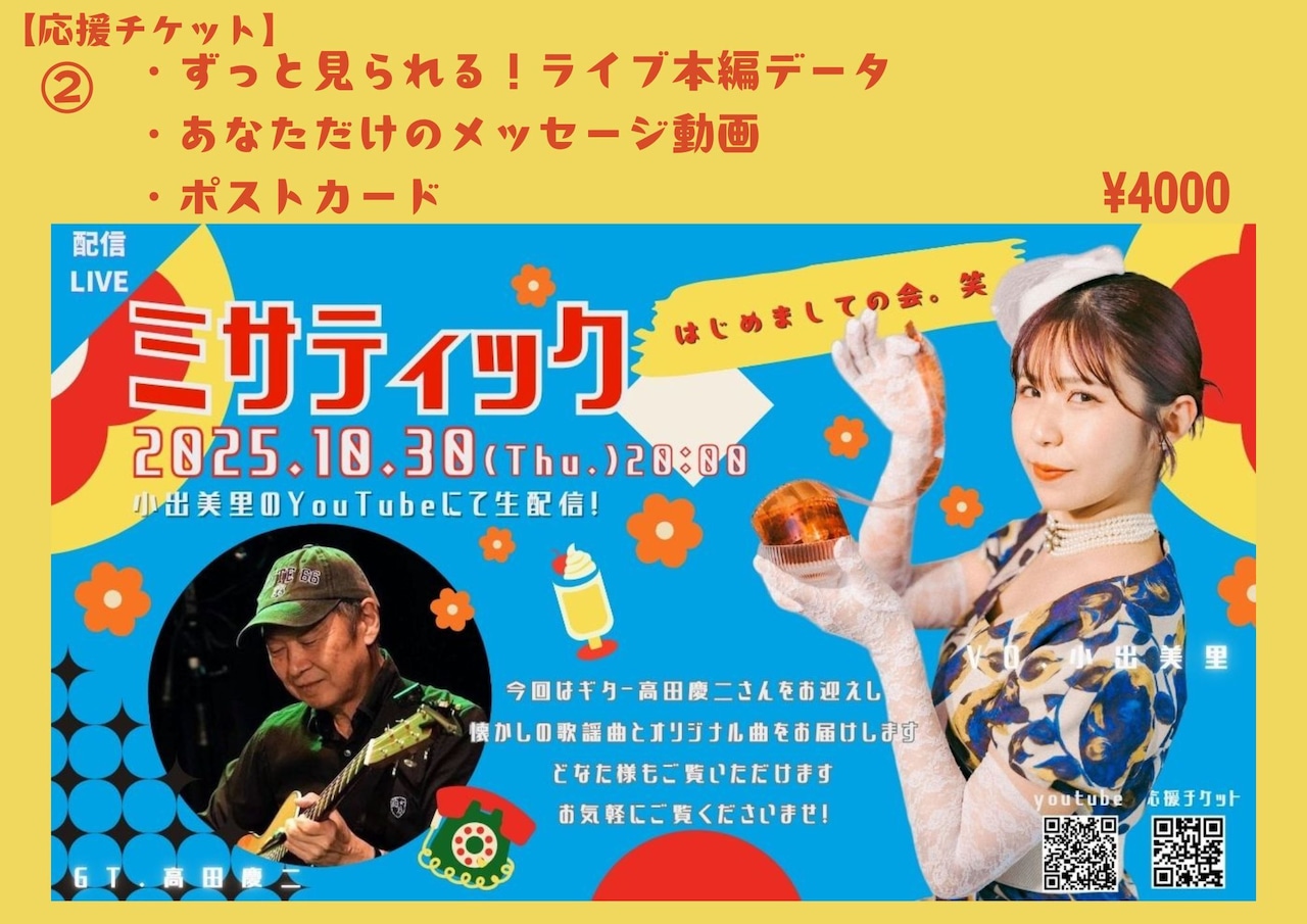 こちらは10月30日(木)配信YouTube配信ライブの期間限定応援ticket購入ページです。